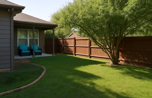 This spacious 3BR/2BA house is built for hardworking construction crews who deserve quality downtime. After those long, demanding job site days, unwind with competitive foosball tournaments, cook hearty meals in the fully equipped kitchen, and rest well in comfortable king + queen beds. Private fenced yard perfect for morning coffee or evening beers with the team. Easy self check-in, quiet Aubrey location near convenient stores. High-speed WiFi, ample parking, washer/dryer for dirty work gear.