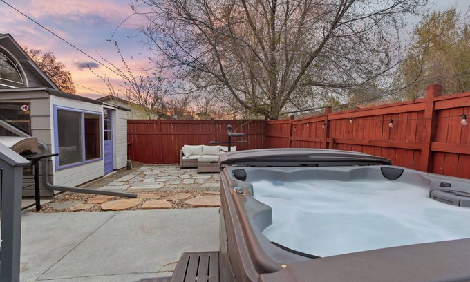 This lovely, updated home is nestled in a quiet neighborhood and is directly across from Main Community Park! Featuring 3 comfortable bedrooms, a fully-fenced in backyard with a hot tub, full kitchen and two comfortable living spaces, come see why this home has a 5-star rating!
