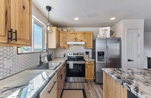King Bed, Large Sectionals, Kids Area, Outdoor Living! Curated & Cozy Scandi! is located in Kearns. King Bed, Large Sectionals, Kids Area, Outdoor Living! Curated & Cozy Scandi! provides accommodation, featuring Security/Safety, Sports/Activities, Kitchen, among other amenities. This House features Security/Safety, Sports/Activities, Kitchen, to make your stay a comfortable one.