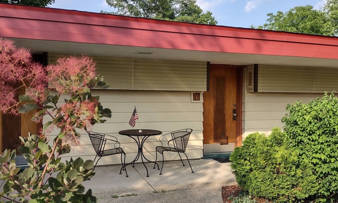 King Bed - MCM Style- Backyard View has 1 Bedroom , 1 Bathroom, and max occupancy of 2 people. The minimum rental for this property is 1 nights, but this can change depending on the season you plan on staying. Previous guests have given good rated it, and VRBO labeled it a top-rated Hotel because of the excellent services rendered by the owner or manager of this Hotel, and has consistently provided great experiences for their guests. Most families or guests that use it recommend it to their friends and some of them are repeat guests. Hotel has a friendly neighborhood, and the Spring Green has interesting places to visit. If you want to learn more about the Hotel in Spring Green, such as places to visit and things to do nearby, you can check below to learn more.