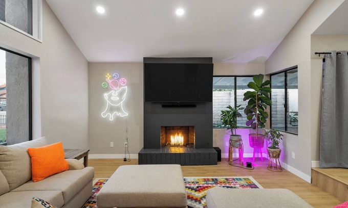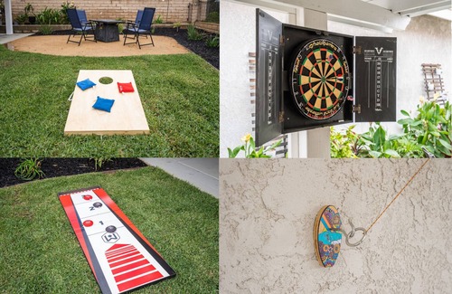 Enjoy a memorable getaway in our 4-bed, 2-bath rental! Unwind in cozy spaces & explore attractions like Downtown LA, Hollywood, Rosebowl, Santa Monica Venice Beach, Universal Studios, Disneyland, Knotts Berry Farm, Raging Waters, & Big Bear Mountain. With privacy, a large backyard, gas fire-pit, BBQ, & yard games, reconnect with loved ones in our perfect retreat. Prioritizing cleanliness, safety, & clear communication, book now for a competitively priced, unforgettable experience!
