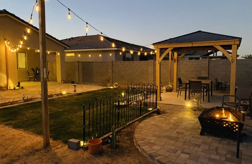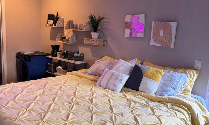 Look no further! This private In Law King bedroom/full bathroom has what you're looking for in a new safe neighborhood, your safety is our priority! You will see a door in the suite which remains locked 24/7 with a deadbolt and also has a alarm system. So sleep in peace. This suite is surrounded by many different cities, Goodyear, Avondale, Buckeye, Surprise, Sun City West and 20 minutes to downtown PHX! It is attached to the back/side part of our home, but its totally private. Has a keyless entry lock to come in and out as you please. This Suite has washer and dryer in unit! a dining table for 2 a smart TV, Kitchenette (NO FULL SIZE KITCHEN)full size bed, XL travel twin cod, Love couch, microwave, mini fridge, ironing board, and iron, coffee pot, full size closet. There is puzzles, Board games, card games, and books! Access to the 303 freeway is only a 2 minute drive! catch the I-10 from the 303 just 5 minutes away. Restaurants nearby, fast food, hiking, biking, Estrella Falls movie theatres, Bowling, Casino, Shopping and much more! Occasionally you will hear the sound of freedom! the area can occasionally be affected by Jet patterns. This is infrequent and no issues have been reported by guests previously. Come enjoy yourself in this peaceful suite made just for you. Please Note you can hear us talk from time to time, or my Shih Tzus will bark when someone is at the door, other than that we are transparent on everything listed!