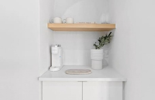 The brand new kitchen is fully stocked with all the essentials, including a Keurig coffee maker ( both hot & iced ! )blender, cookware and utensils ( just to name a few ) and all appliances; refrigerator, range, microwave , dishwasher and toaster.