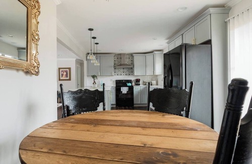 Switch on the fireplace, relax and settle by a 55-inch smart TV. This home is equipped with High-speed Wi-Fi. Everything is sparkling and new with beautiful touches like new floors, brand-new stocked kitchen, and work station.