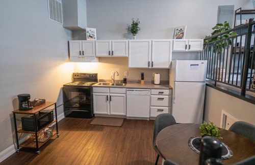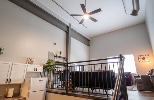 CENTERED DOWNTOWN MAIN ST! Situated in the Arts and Market District of downtown Lafayette, this 1 bedroom, 1 bath, unique, modern apartment is newly renovated and hosts an open concept with extremely high ceilings and a beautiful accent wall. Apartment is located directly in the Heart of Downtown Lafayette, just minutes from Chauncey Village District on Purdue University's campus, Ross-Ade Stadium, and Mackey Arena. This is truly a prime location for a Lafayette, IN/Purdue University visit.