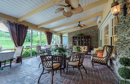 This King Bed Suite with His & Hers separate bathrooms is a pure delight. The Grand Country Estate provides the very best finishes and amenities in southern Indiana. Experience staying in your own private suite within this 14,000 sf estate house which includes a dining room, living room, study,breakfast room, sun porch, a full length basement entertainment room with game tables and walk out sunken garden and fire pit. Don't forget about the Jr. Olympic size swimming pool with a ht tub and cabanas. Enjoy 360 degree views of the manicured estate grounds and beautiful countryside.