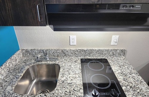 - Kitchenette, Refrigerator, microwave, Stove Top, Sink,