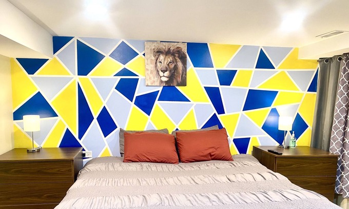 The bedroom includes a King bed and a folding twin bed located in the closet, in the closet, you can find an ironing board, an iron and extra bed sheets in case you need them. The nightstands are very spacious for you to store personal items. On each nightstand table, there are lamps that turn on and off at the touch of your hand which also includes USB ports, You will get free access to WI-FI and smart Tvs for the full enjoyment of your visit.