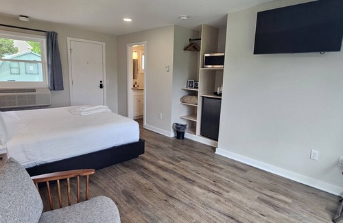 🌅 Welcome to the Juniper Motel – nestled on the beautiful waterfront of our quaint town 🏞️. Our spacious and comfortable King Bed room 🛏️🛏️ provides a relaxing retreat for our guests for ultimate relaxation. Immerse yourself in the tranquil atmosphere of our charming town, surrounded by picturesque views 🌲 and peaceful surroundings 🕊️.