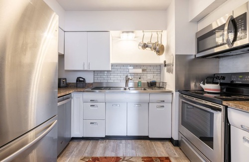 2 bedroom apartment with full kitchen including dishwasher. Netflix, Disney+, YouTube TV, HBO Max, prime video all included. Dining room with dining with pendant lighting. Wifi and ethernet access. Quiet hours after 9pm. *If you are a local resident, please contact the host before booking*