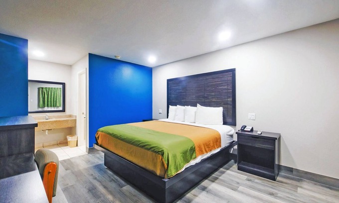 King Room with Kitchenette, Free Breakfast, and Parking! is located in Wharton. King Room with Kitchenette, Free Breakfast, and Parking! provides accommodation, featuring Air Conditioner, TV, Bedding/Linens, among other amenities. This Hotel features Air Conditioner, TV, Bedding/Linens, to make your stay a comfortable one.