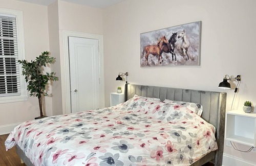 NEW LISTING!!! It's called King's Retreat because this apartment boasts of space and offers 3 King Size Beds with custom frames to make every guest feel like a King (or ruling Queen). Located only minutes walking from the Pimlico RaceTrack in Mount Washington and minutes away from the Sinai Hospital. You'll spending your time in this unique second floor of this historic home. The apartment is completely private and offers 3 bedrooms and 2 full baths, everything was renovated since the pandemic.