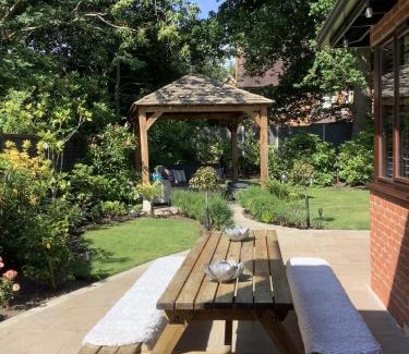 King size room with own bathroom & livingroom in a luxury home, free WiFi, HOMESTAY is located in West Byfleet, just 10 miles from Hampton Court Palace and 14 miles from LaplandUK. With free private parking, the property is 6.3 miles from Thorpe Park and 10 miles from Chessington World of Adventures. Windsor Castle is 16 miles away and Box Hill is 17 miles from the homestay. There is a seating area, a dining area, and a kitchenette complete with a dishwasher, an oven, and a microwave. The property has an outdoor dining area. Guests can also relax in the garden. Legoland Windsor is 16 miles from the homestay, while Nonsuch Park is 16 miles away. London Heathrow Airport is 14 miles from the property.