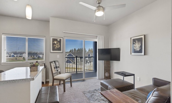 Come cozy up in this king studio with safety, comfort and convenience. With a spacious bathroom and room for a king, don’t let this studio fool you, there’s plenty of space. 550 sqft with a chef ready kitchen, high speed wifi, and YouTubeTV. Down the street just a walk or bike ride away is all the best restaurants and entertainment Jordan Creek has to offer. With an underground parking garage and easy elevator access this unit will ensure a convenient stay. Enjoy your complimentary coffee on your private balcony facing west and watch the beautiful sunsets. 5 star customer service accompanies every confirmed reservation. Reach out with any questions, we’re happy to help.