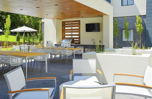 In the KITCHEN you'll find a stove, a microwave, a dishwasher, a refrigerator, cooking utensils, and dishes. Start your day with a cup of coffee, fresh from our in-suite coffee machine. In the morning, enjoy a complimentary breakfast buffet which features a variety of delicious options. You can grill up a meal in the shared BBQ area.