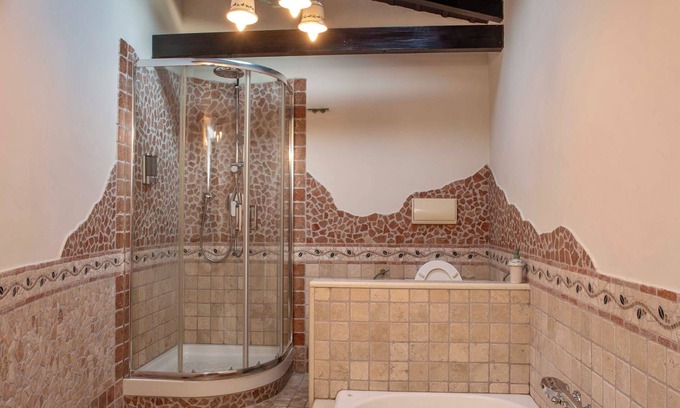 The accommodation of 70 sqm is located in a period villa furnished with antique furniture and modern furniture. Every room in the property has its own "theme": the "Suite Colonial Panorama" features a large double bedroom with bamboo canopy bed and voile linens, two bed sofa, fully equipped kitchen, twin bedroom, large bathroom with bathtub and hydromassage shower, smart tv, wi-fi, heating, air conditioning, fridge, espresso machine, washing machine.
