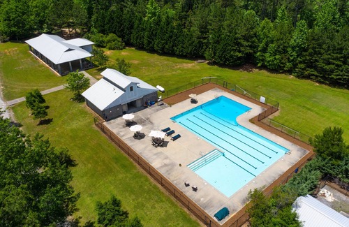 Welcome to Kingfisher Cabin, a serene haven nestled in the picturesque Pine Acres Retreat, perfect for your wedding celebrations. With its tranquil setting by beautiful Lake Allatoona, this property offers an idyllic backdrop for couples seeking to create unforgettable memories with family and friends. Ideal for family gatherings, team-building exercises, or church retreats, Kingfisher Cabin can comfortably accommodate up to 34 guests, ensuring that your loved ones are close by on your special day.