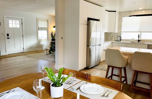 Experience comfort and convenience in this updated 1BR/1BA home in the heart of Carson City. Featuring a spacious kitchen, stylish dining area, and a cozy living room with a sleeper sofa, this retreat is perfect for up to four guests. The bedroom boasts an organic mattress and high quality bedding for restful sleep. Work remotely with a dedicated stand-up desk and fast Wi-Fi. Walk to Capitol grounds, restaurants, and coffee shops, or take a short drive to Lake Tahoe (30 min) and Reno (30 min).