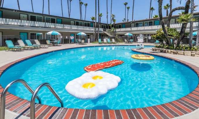 Centrally located in San Diego’s Mission Valley, Kings Inn features a spacious outdoor swimming pool and rooms with free WiFi. San Diego International Airport is 15 minutes’ drive away. A compact refrigerator is included in each of the 1960s-themed guest room at Kings Inn. Furniture with USB charging outlets is also provided. Guests at Kings Inn can start the morning with a delicious breakfast from the on-site Waffle Spot Restaurant. The hotel also features The Amigo Spot, a colorful Mexican restaurant, on site. SeaWorld San Diego and Mission Bay are 15 minutes’ drive away from Kings Inn. Balboa Park and the San Diego Zoo are 5 mi away.
