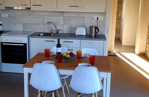 Kipos Apartments are newly built on the site of an old family house. They are built of stone, some of which came from the original house. They are stylish traditional apartments with some contemporary touches. Bed linen and towels are supplied and are changed on a regular basis.