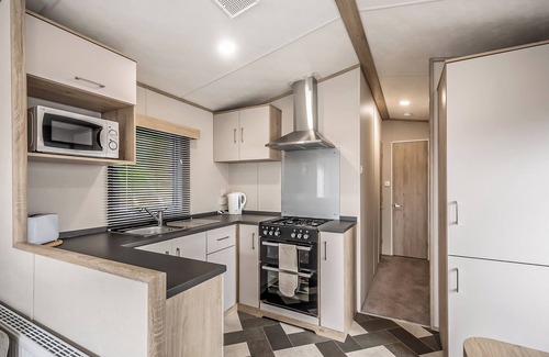 Cosy and relaxed living, this 2 bedroom caravan sleeps 4 people in one double and one twin bedroom. en suite W.C. and wash basin, and family bathroom with W.C shower and wash basin. Gas central heating throughout the caravan keeps you cosy on those cooler days. The lounge area has an electric fire, TV and the kitchen well equipped with gas cooker and hob, microwave and integrated fridge/freezer. Side door leading onto veranda with outdoor furniture and parking beside accommodation.