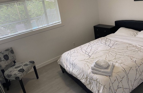 Newly renovated, quiet, safe, easy access to highway/ projects, comfortable new beds , clean new linens , everything you need, flexible check in/ check out times with lock box/ electronic key pad, Super fast fibre internet, off street parking, great bbq/ deck, top of the hill location, private street, trail system at the end of the street, walk to the store/ pub/ pizza, private secure backyard