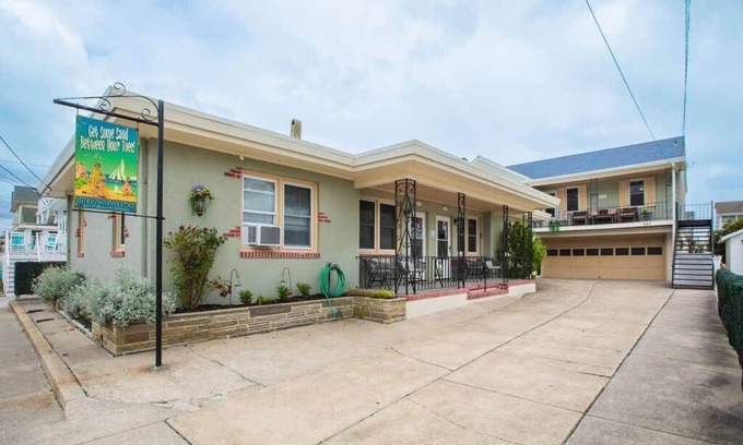 Kiwi's Cottage has two bedrooms and one full bath, dining area, a full kitchen, living room, WIFI, A/C, and heat. There is an outside private porch perfect to enjoy coffee in the morning and the cool breezes of summer evenings. There is a washer/dryer in a common area for guest to use during their stay. We are ideally located: 1.5 blocks from the beach and boardwalk, 3 blocks from the convention center, and a block to Duffer's and Marvis's Diner. The outside area has plenty of room for outdoor fun and dining complete with a gas grill and outdoor seating. Kiwi's Cottage can be rented together with Darcy's Beach House and PG's Bungalow for a shared vacation experience with friends and family. Your reservation includes linens, towels, beach towels, beach chairs, beach cart and an umbrella. We have a dedicated driveway for check in and check out. Street parking is free using the provided parking permit, one permit per apartment. Kiwi's Cottage is Pet friendly; please check our house rules for details.