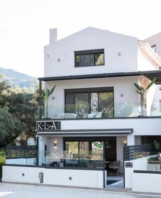 KLA VILLA by PROJECT 86 IKE is located in Nikiana, just a 4-minute walk from Nikiana Beach and 4.6 miles from Agiou Georgiou Square. This beachfront property offers access to a patio, free private parking, and free Wifi. The villa provides an outdoor swimming pool, hot tub, and a 24-hour front desk. Accommodation for disabled guests is also available at the property. Providing a terrace and sea views, the villa includes 4 bedrooms, 2 living rooms, satellite flat-screen TV, an equipped kitchen, and 4 bathrooms with a walk-in shower and a bidet. A private entrance leads guests into the villa, where they can enjoy some wine or champagne and fruit. There's also a seating area and a fireplace. Guests can make the most of the warm weather with the property's barbecue facilities. An indoor play area is also available at the villa, while guests can also relax in the garden. Church of Agia Kiriaki is 4.7 miles from KLA VILLA by PROJECT 86 IKE, while Phonograph Museum is 4.7 miles away. Aktion Airport is 17 miles from the property.