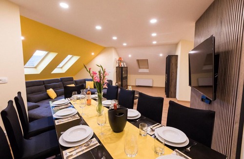 This apartment provides free private parking, bicycle parking, and free Wifi. Guests have access to a sauna, hot tub, and spa facilities. Leading onto a patio with garden views, the spacious air-conditioned apartment consists of 3 bedrooms. Providing a terrace with mountain views, this apartment also provides guests with a satellite flat-screen TV, a well-equipped kitchen with a dishwasher, an oven, and a microwave, as well as 3 bathrooms with a hot tub and bathrobes. Additional in-room amenities include wine or champagne. Rijeka Airport is 55 miles away.
