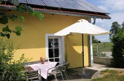 Isolated and still with walking distance to the Geinberg thermal baths! cosy, comfortable cottage. In the district of Winten, in a sunny position, along the wooded area. For shared use: large, well-kept garden 4'500 m2 (not fenced) with flowers, meadow, orchard. Barbecue, fireplace, children's playground (slide, swing). In the house: WiFi, central heating system, washing machine (for shared use). Parking at 50 m on the premises. Grocery 1.2 km, restaurant, bus stop 900 m, railway station 1.3 km, outdoor swimming pool, indoor swimming pool, thermal baths 900 m, swimming bay 10 km. Golf course (18 hole) 16 km, tennis 900 m, riding stable 1 km, sports centre 900 m. Nearby attractions: Innviertler Brauturm 7 km, Augustiner Chorherren Stift Reichersberg 13 km, Skyflyer Höhnhart 17 km. Hiking paths: Kobernaußerwald. Please note: Loading and unloading of baggage is possible at the holiday house. The complex has another 1 house for rent. Please note: dogs must be kept on a leash. Milk and eggs are sold on the farm at the neighboring farmers. This house was built according to ecological principles. Additional information: The car park has a charging station for electric vehicles.