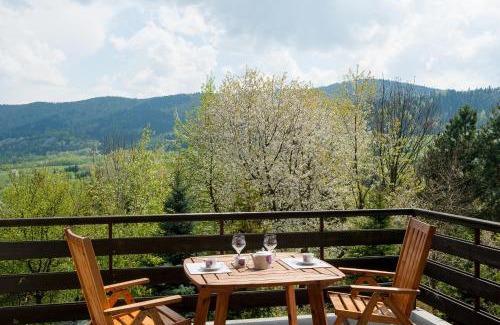 - Chatka Niedźwiadka - domki w górach z widokiem na Beskid Niski Sauna, balia i kominek