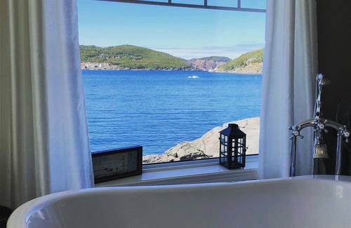 Knight’s Landing, is a very private retreat only 25 minutes from Twillingate and 45 minutes from the ferry to Fogo Island. There are three separate suites, Upper and Lower suites with kitchenettes & The Loft with a full kitchen, all with great ocean views. The rooms are non smoking. The Upper suite has a Queen bed, microwave, small refrigerator, coffee maker, electric kettle, toaster oven, dishes and utensils as well as TV, internet, open concept old fashioned tub and private bathroom. Outside on the patio is an electric barbecue, table and chairs.