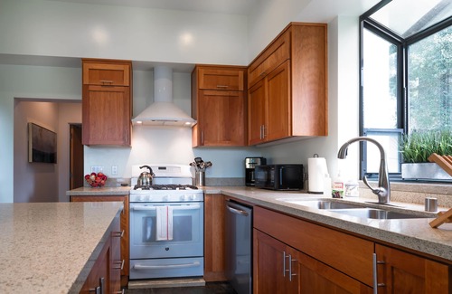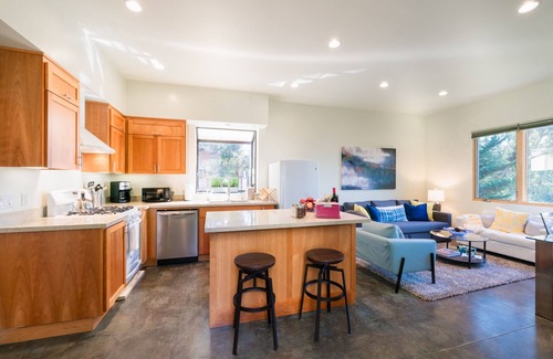 New, modern, immaculate 2BR/2BA (sleeps 6) Oakland hills gem, Bay views, spectacular proximity to UC Berkeley, SF, Silicon Valley, Redwoods, Napa wineries and Calistoga hot springs.