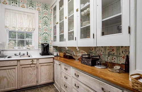 The property features five spacious bedrooms, each accompanied by a private bath, ensuring comfort for you and your guests during your stay. The sweeping back lawn is perfect for outdoor ceremonies or receptions, allowing you to exchange vows amidst natural beauty and stunning vistas. Inside, you will find a gourmet kitchen, dramatic formal dining room for large gatherings, cozy fireplaces, and charming architectural details including original oak hardwood flooring and vintage lead glass windows. For added security, outdoor lighting and surveillance cameras are installed around the property, providing peace of mind as you celebrate your love.