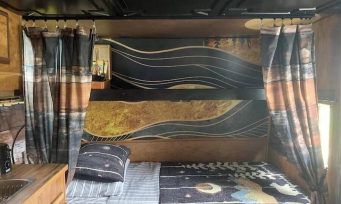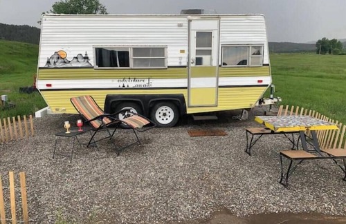 The Happy Camper RV&B welcomes you! Refresh and reset in this modernized vintage camper surrounded by pastureland next to the Yellowstone River in the historic town of Reed Point. Kodiak has two twin beds, bathroom and kitchenette.