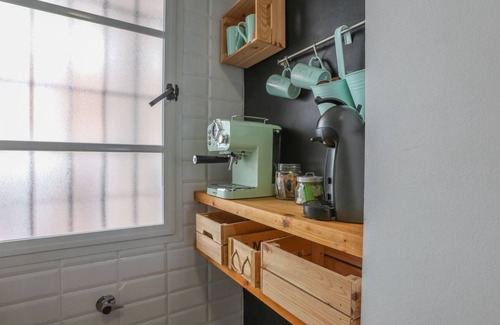 This apartment is distributed in a large open area where the living room and kitchen are located. It has a dining table, sofa and television. The kitchen is equipped with everything necessary for the use of guests, since it has, among other things, a fridge, microwave, dishwasher, toaster, hob, coffee maker, etc.