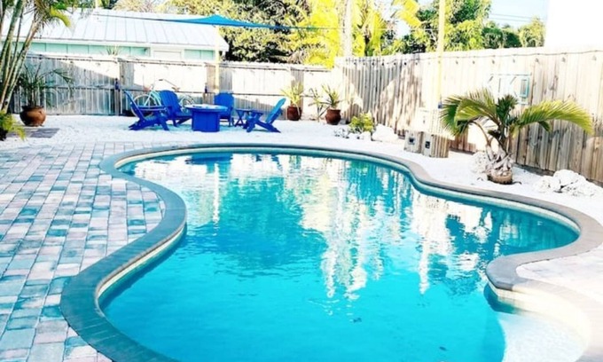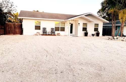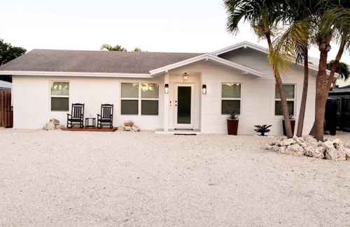 Newly renovated with modern, cozy, Keys feel. Lots of natural light. You can relax at the rocking chairs in the front of the house, in the back covered patio, drinking a cocktail in the heated pool or the gas fire pit sitting area.