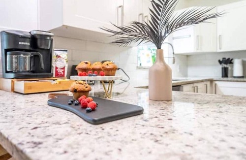 -Fully equipped kitchen with coffee maker (Keurig and drip), waffle maker, blender, toaster, electric tea kettle, hand mixer, crock pot, instant pot, dishwasher, microwave, some spices. Breakfast nook with seating for 6. Counter with 2 barstools.