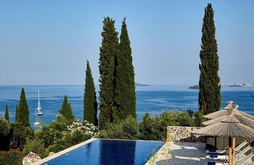 The villa is 9km from Glyfada, a lively beach guarded by tree-covered cliffs. Rent a sunbed from one of the beach bars and take a walk along the supremely soft sand. The adventurous among you can get involved in numerous watersports and even an inflatable assault course. At night, dine in one of the tavernas in the tiny village.