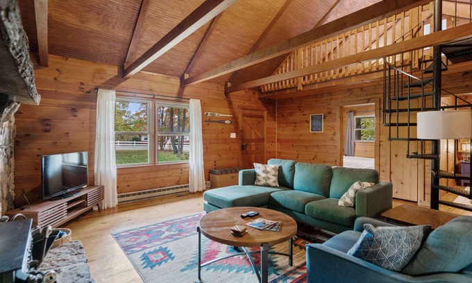 Just a 20-minute drive from downtown Winchester, the space boasts 2 bedrooms and a master bedroom loft with a king bed. A newly renovated and well-equipped kitchen hosts a large eat-in dining table.