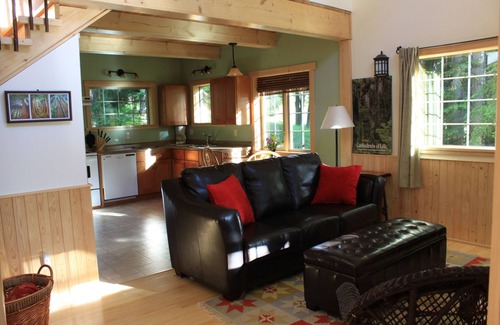 If you are looking for peaceful solitude in a classic forest setting with hiking, biking, and water sports near your doorstep in a community with lots of spirit, culture and arts, this fully furnished, self-contained cabin is waiting for you.