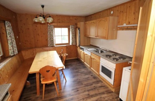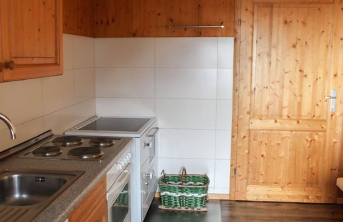 4-room farmhouse 130 m2. Object suitable for 6 adults. Cosy furnishings: entrance hall. Living room with satellite TV, flat screen and wood-burning stove. 1 room with 1 bed, 1 double bed and tiled stove. Exit to the balcony. Kitchen-/living room (4 hot plates, oven, dishwasher, freezer, electric coffee machine) with dining table and wood-burning stove. Shower/WC. Upper floor: 2 rooms, each room with 1 bed, 1 double bed and electric heater. Balcony. Balcony furniture. Very beautiful panoramic view of the mountains. Facilities: sauna. Please note: non-smoking house. Maximum 2 pets/ dogs allowed. Smoke alarm, fire extinguisher. The wood stove is a pellet stove. The sauna has an outside entrance.