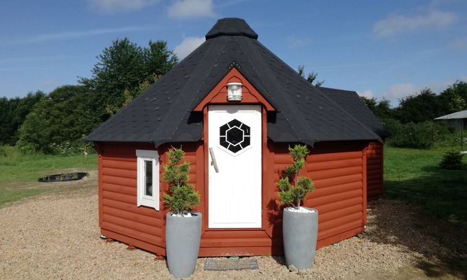 A kota is an octagonal shaped Finnish chalet initially used to gather with friends around a central barbecue. Ours is a modified and enlarged version and consists of a room with an electric bed of 160 x 200 cm (Queen size) and a small ensuite bathroom.