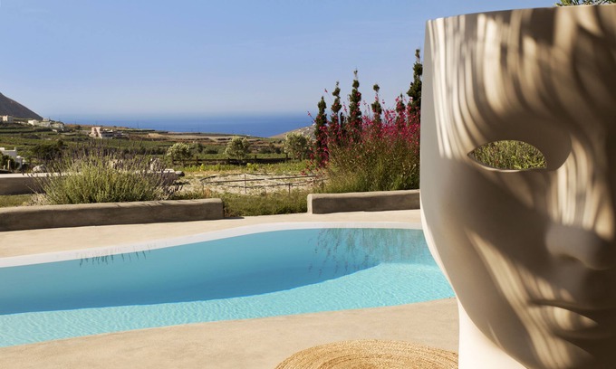 - Breathtaking Views: Enjoy panoramic vistas of the Aegean Sea and lush Santorinian vineyards from the comfort of your own private pool, setting the perfect scene for unforgettable memories.