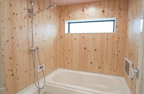 The bath is made of luxurious cypress and offers seminatural hot springs using Komyo stones