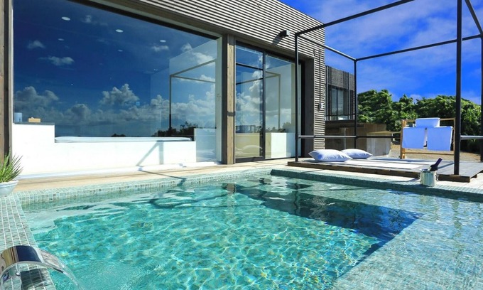 Junglia Okinawa Approximately 25 minutes by car / Adults only Equipped with a daybed overlooking the sea a private pool and a view bath Spacious queensize beds are available The private pool is not heated