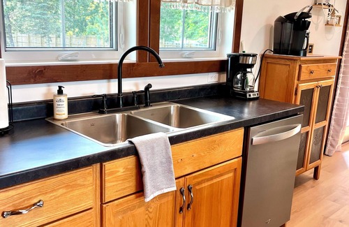 The kitchen is fully-equipped with everything that is needed to make a meal. Take your favorite foods and enjoy them at the dining room table or outside on the patio.