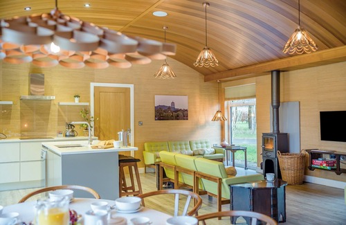 Before stepping into this single-level retreat, take a moment to soak in your surroundings of peaceful Welsh countryside and distant mountains. Head inside and find that the rural charm continues in the form of chic wood cladding and a bright and airy living space soaked in natural light. The open-plan living space forms the social heart of the property, a place to gather, admire the views, and plan the next days’ adventures. Retreat to the lounge space after days of Welsh hiking and sink into the soft seating, flick on the Smart TV and fire up the wood burner for a cosy evening. When stomachs begin to rumble, find that the stylish, well-appointed kitchen offers all you need to cook up a Welsh feast for your loved ones, who can gather to eat at the oval dining table nearby or at the breakfast bar if numbers are low. At the end of each busy day away, four delightful super-king-size bedrooms offer restful nights of sleep, one of which boasts an en-suite bathroom with shower over bath, the rest en-suite shower rooms. All bedrooms offer zip-and-link beds that can be converted to twins on request, offering flexibility to all.