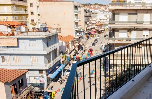 The outdoor wrap-around balcony has open views of the centre of Kozani city!