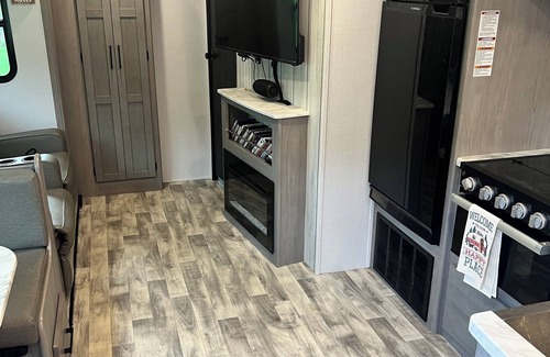 Your home away from home in Crawfordsville with 2 bedrooms. This brilliant recreational vehicle offers a cozy queen bed and a fun bunk bed for a good night's sleep. With 2 bathrooms equipped with a hair dryer and shower, you'll feel refreshed and ready for your adventures. The living room provides an enchanting space with a comfy full bed for extra guests. Full amenities available for your stay including WiFi. A great place to call homebase while you're away, we hope you enjoy your stay. Please Note: While we don’t allow pets, since this is our personal camper pets do stay in it. We thoroughly clean after every use (including our own), but pet hair may still exists.